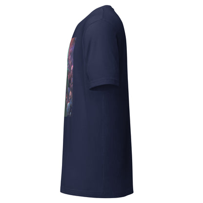 Adéntrate en un mundo de expresión audaz con la camiseta alienígena intergaláctica. Esta camiseta de LuckeLadybug aporta energía cósmica a tu atuendo. El diseño presenta una detallada figura alienígena rodeada de colores vibrantes y formas surrealistas. Destaca en cualquier evento.