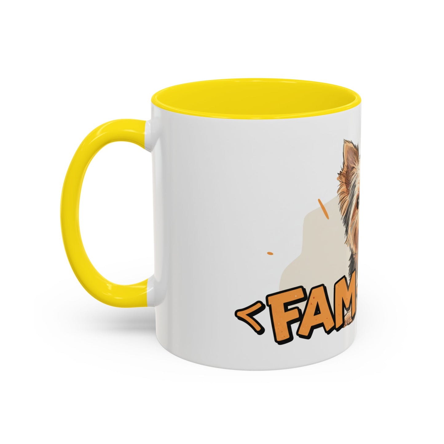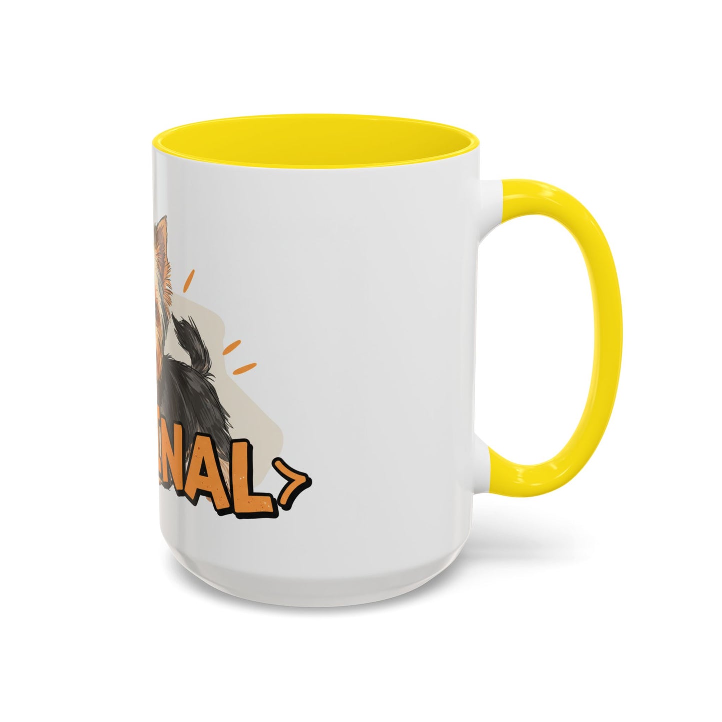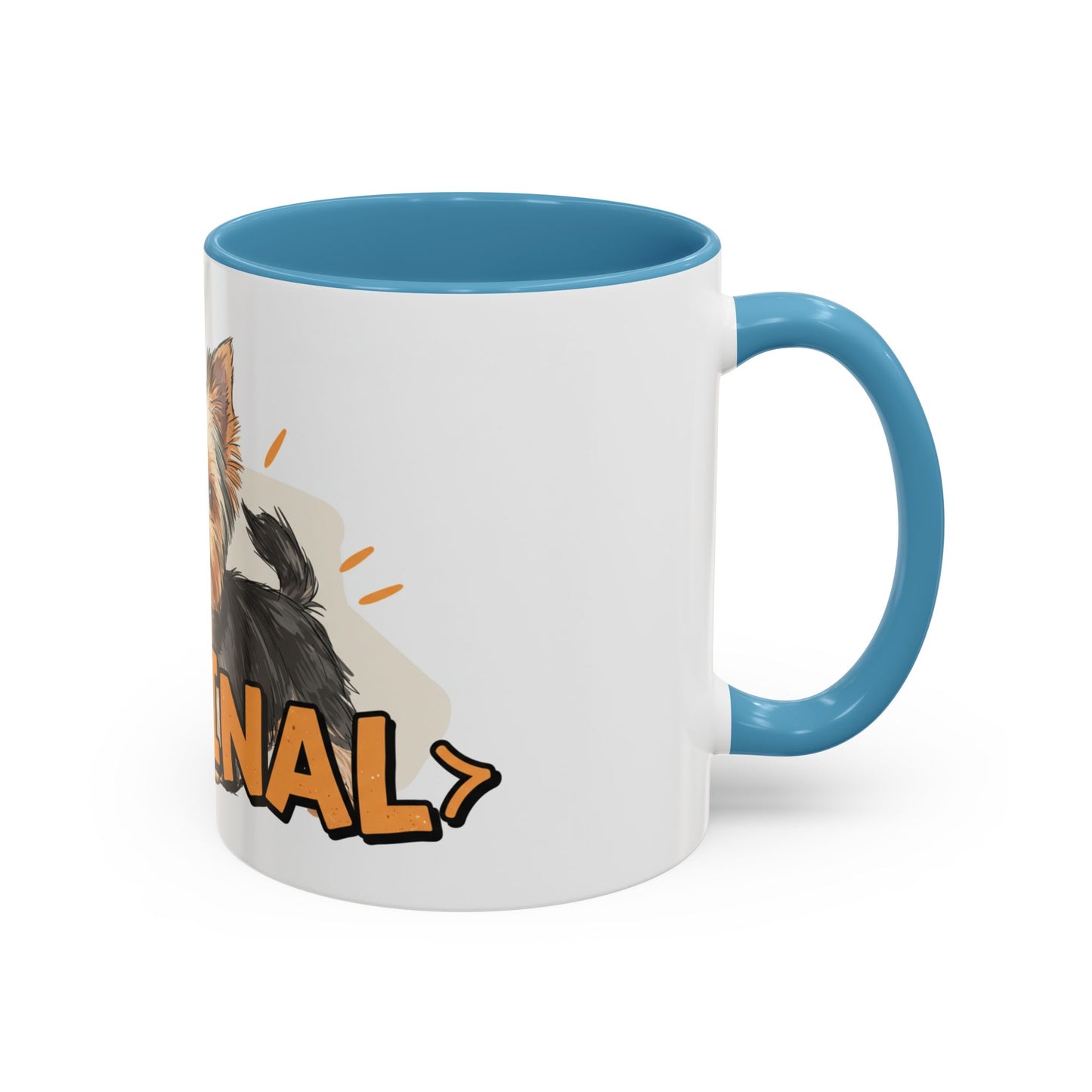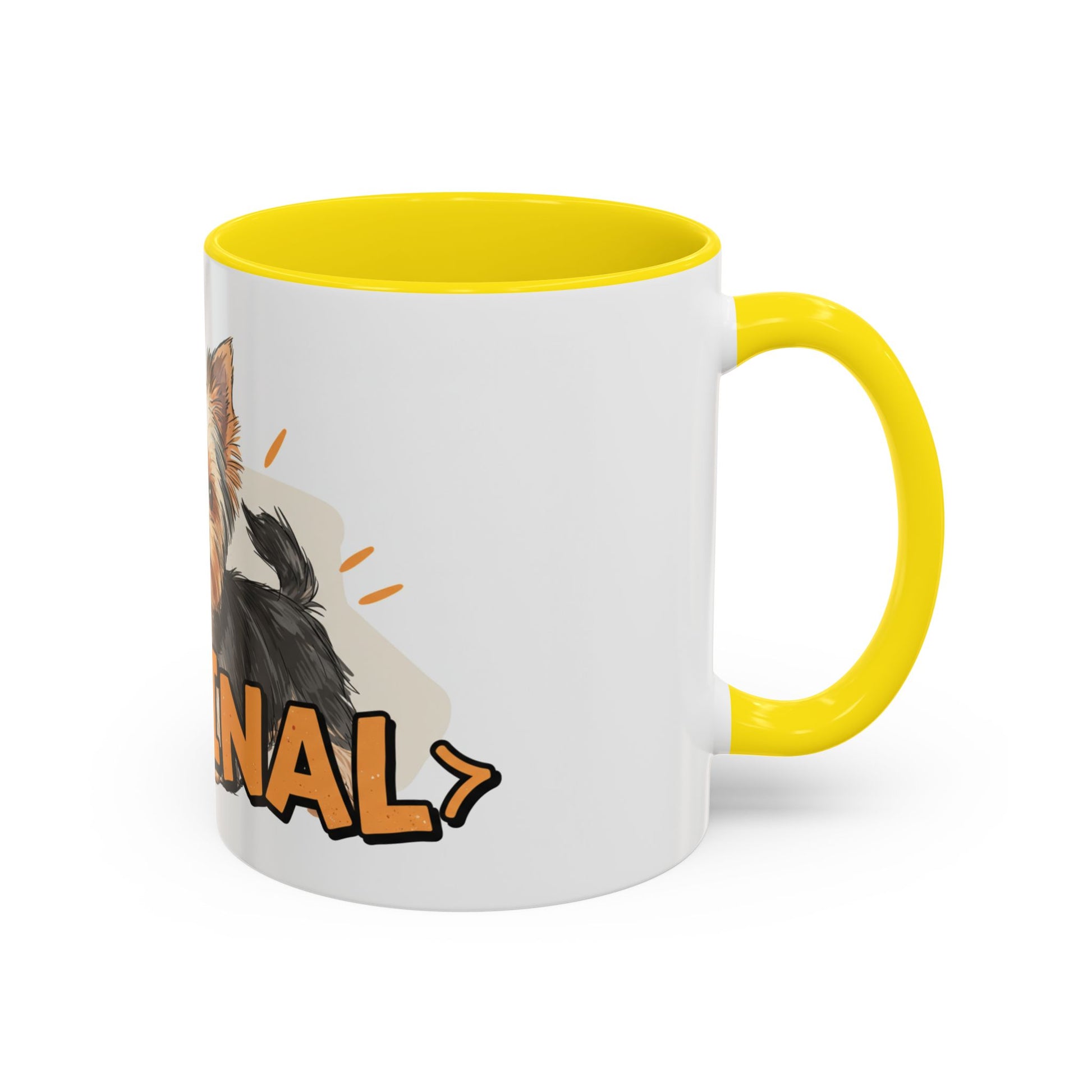Bring joy to your mornings with this Yorkie dog coffee mug. The design features a cute Yorkie printed on both sides. Each sip feels special for anyone who loves dogs. The accent color inside the mug adds a bold touch. The Yorkie dog coffee mug stands out in any kitchen. Display it on your shelf or desk as a cheerful accent.