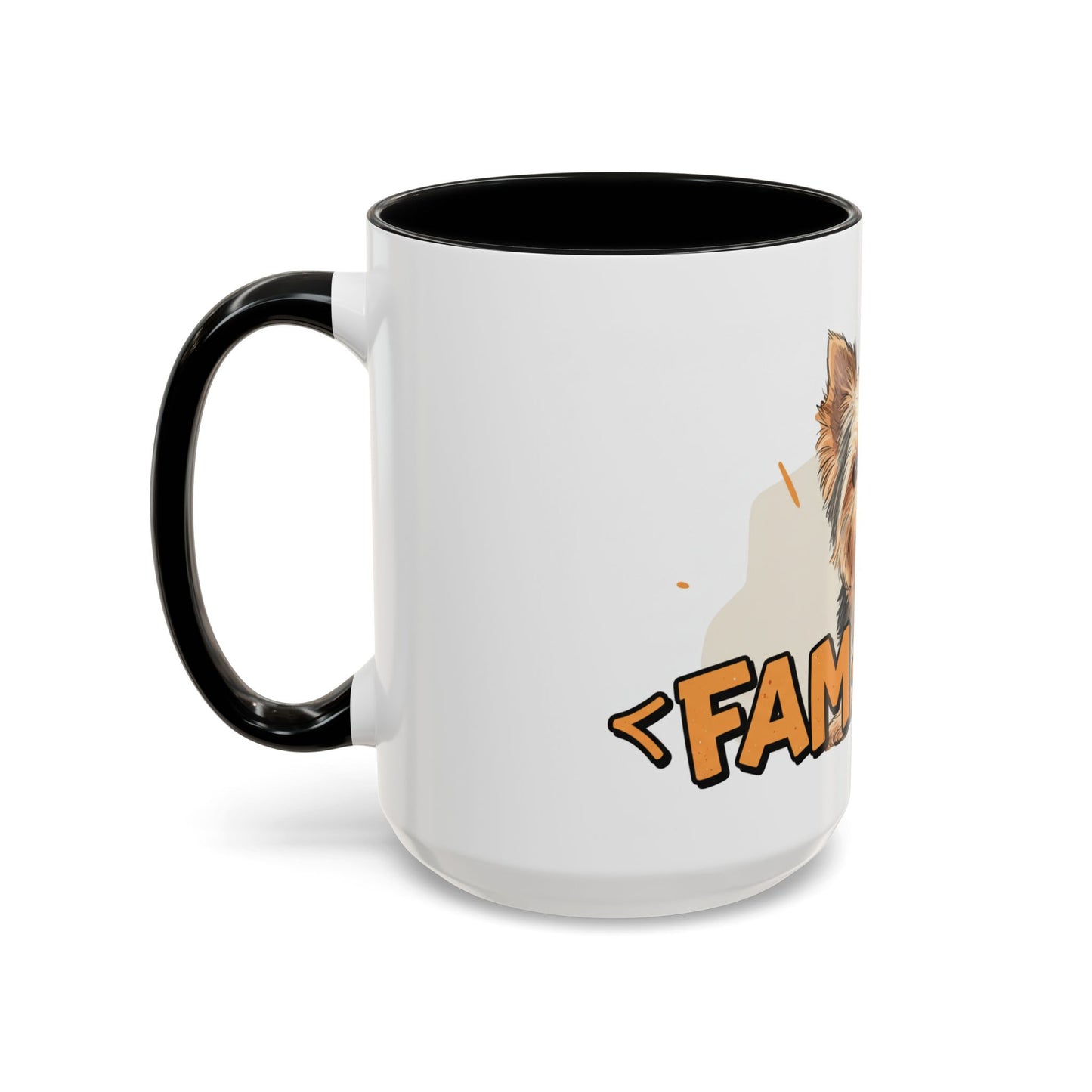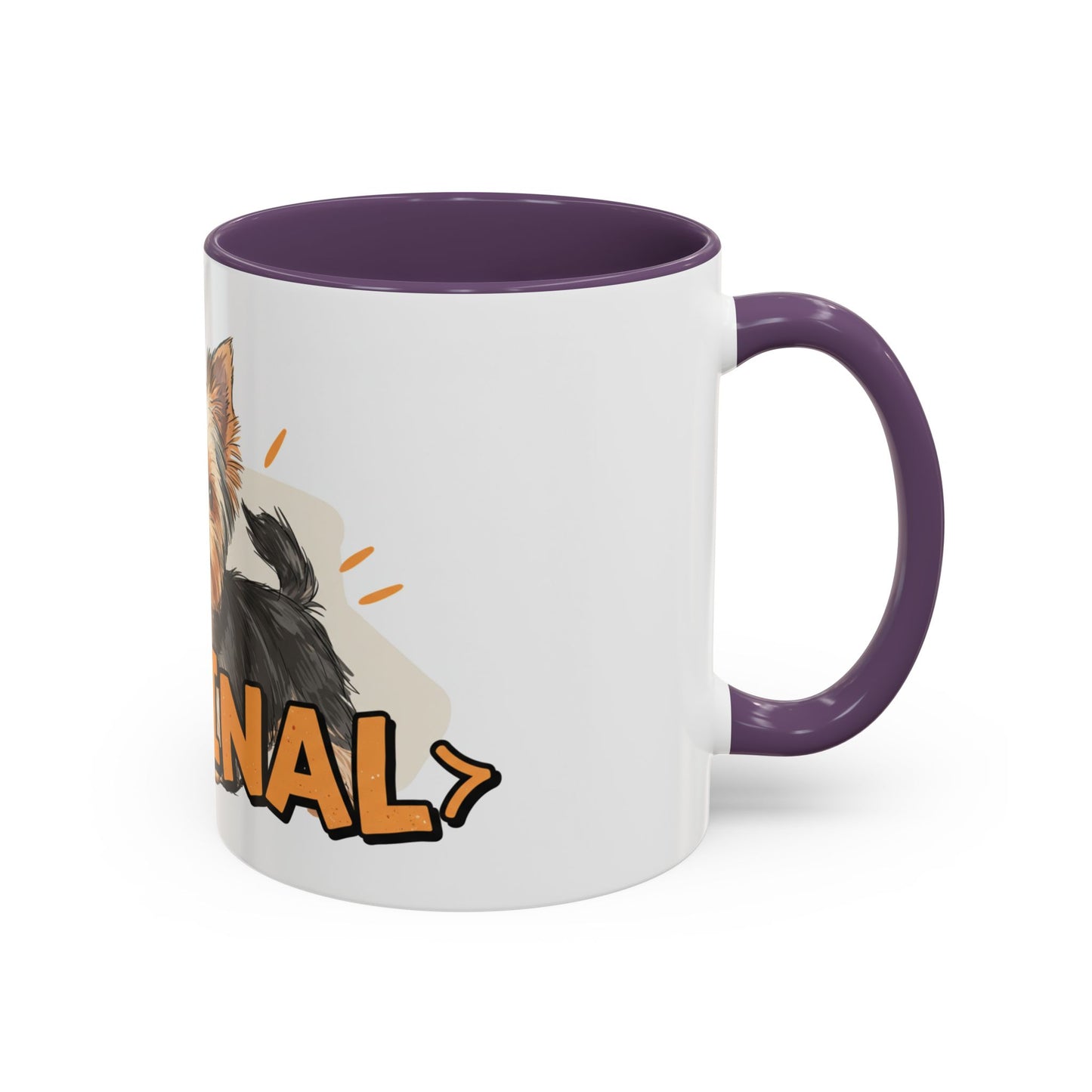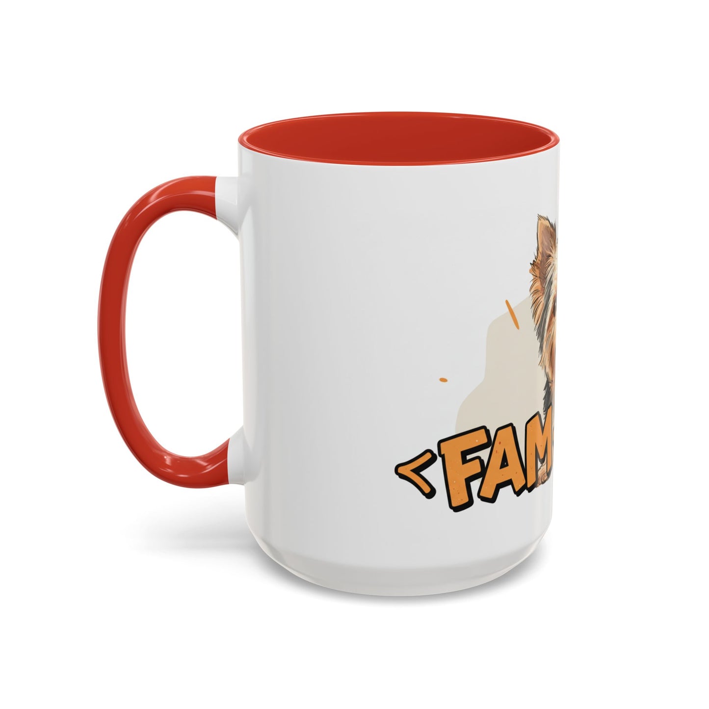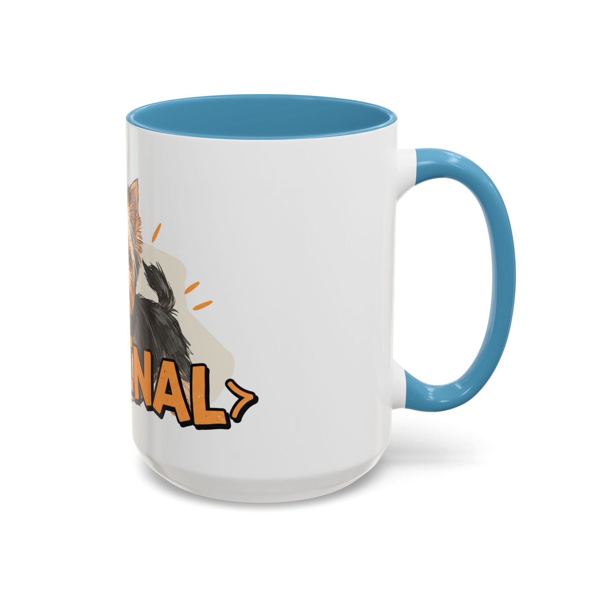 Bring joy to your mornings with this Yorkie dog coffee mug. The design features a cute Yorkie printed on both sides. Each sip feels special for anyone who loves dogs. The accent color inside the mug adds a bold touch. The Yorkie dog coffee mug stands out in any kitchen. Display it on your shelf or desk as a cheerful accent.