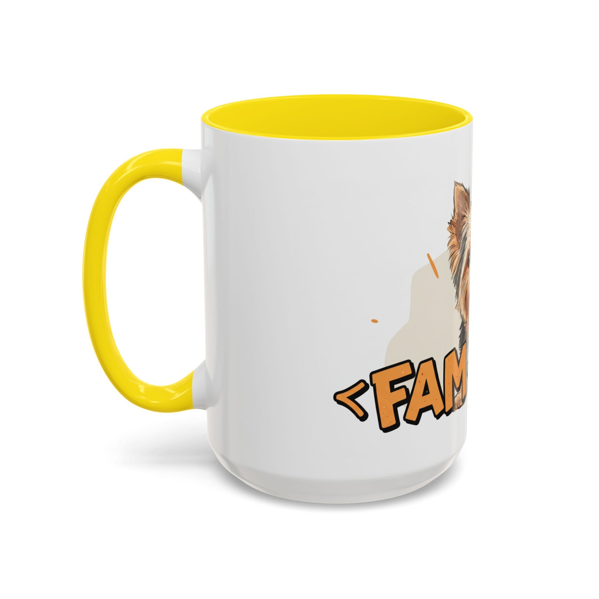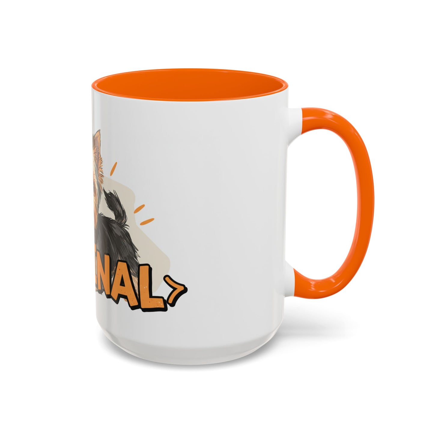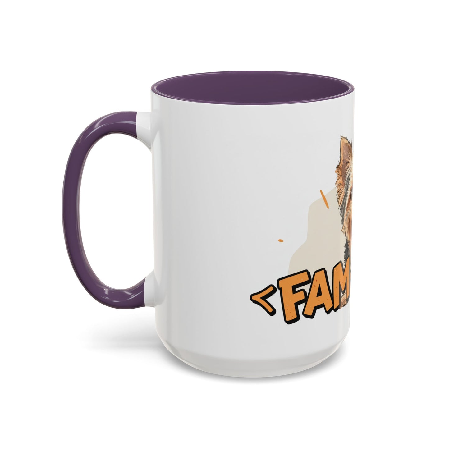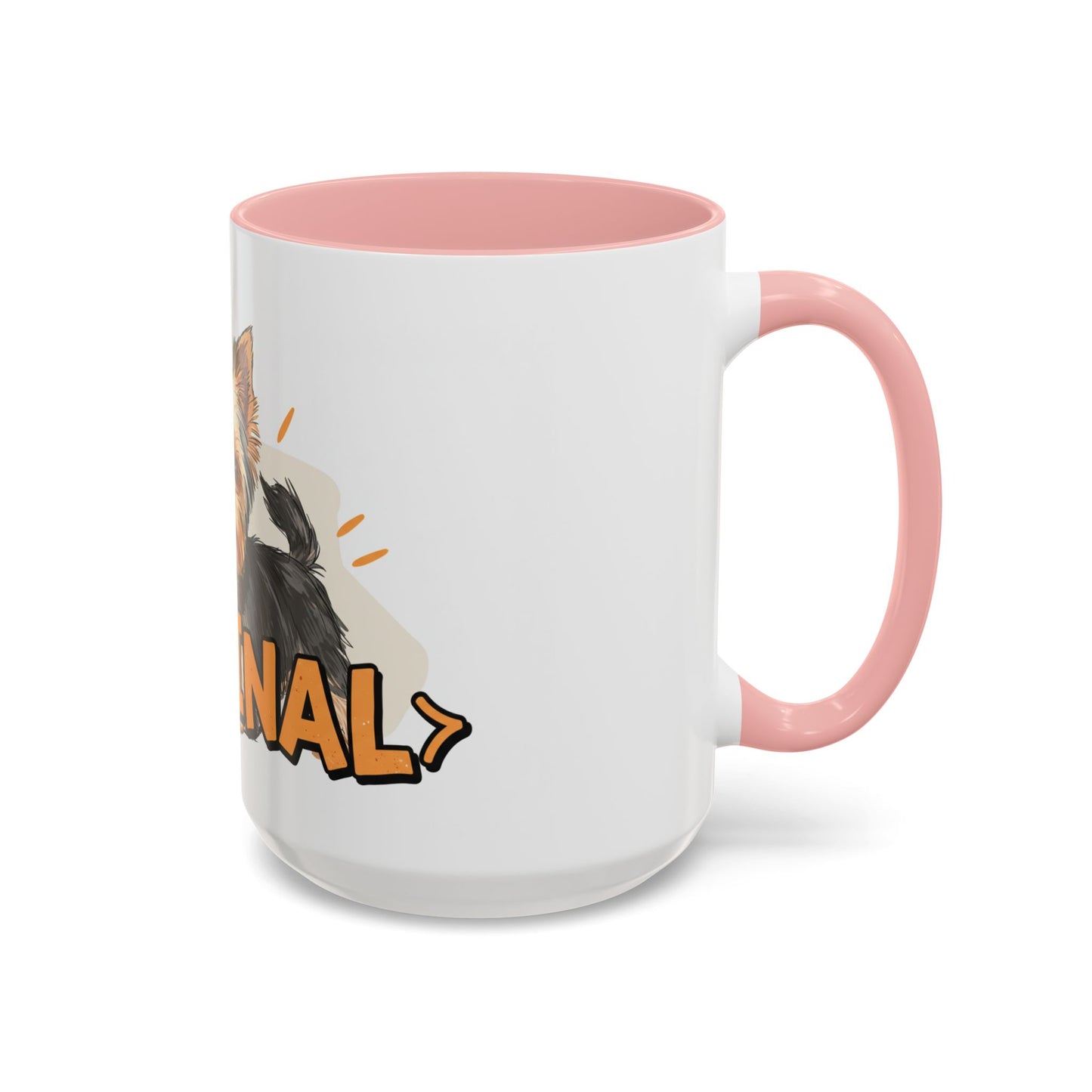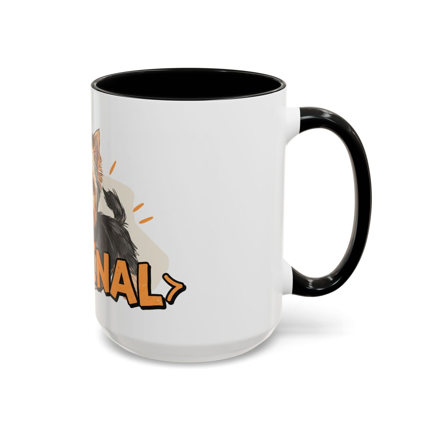 Bring joy to your mornings with this Yorkie dog coffee mug. The design features a cute Yorkie printed on both sides. Each sip feels special for anyone who loves dogs. The accent color inside the mug adds a bold touch. The Yorkie dog coffee mug stands out in any kitchen. Display it on your shelf or desk as a cheerful accent.