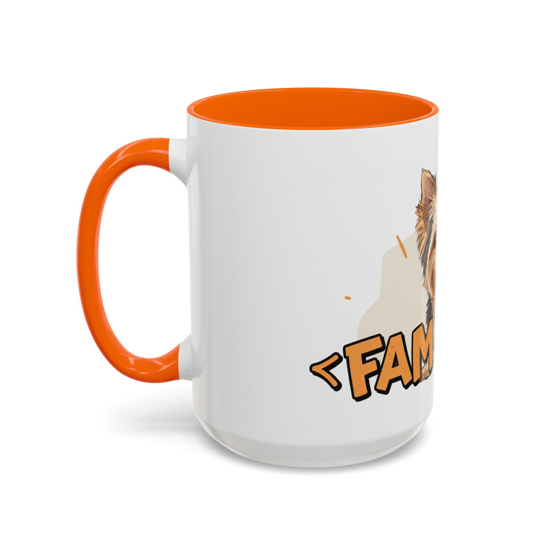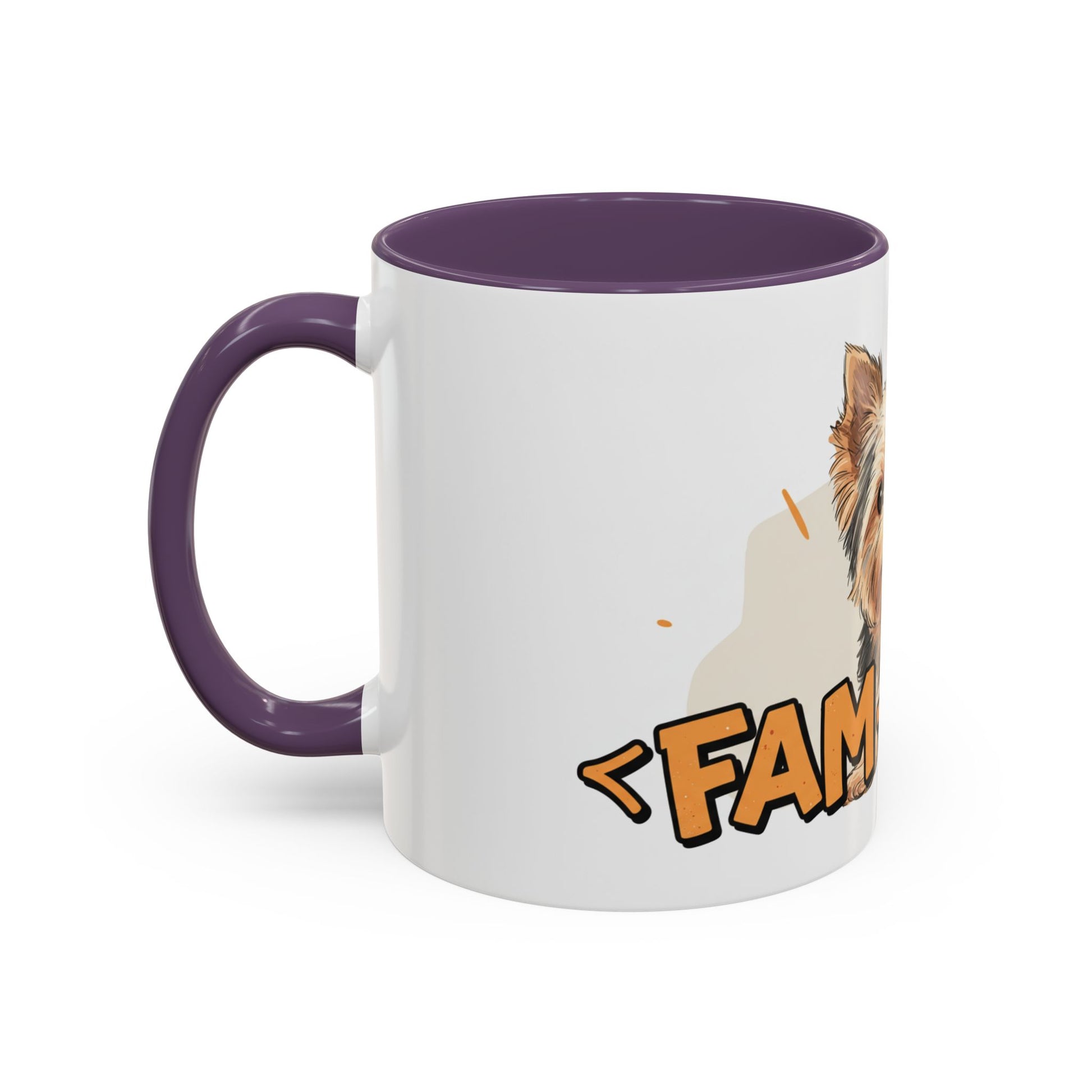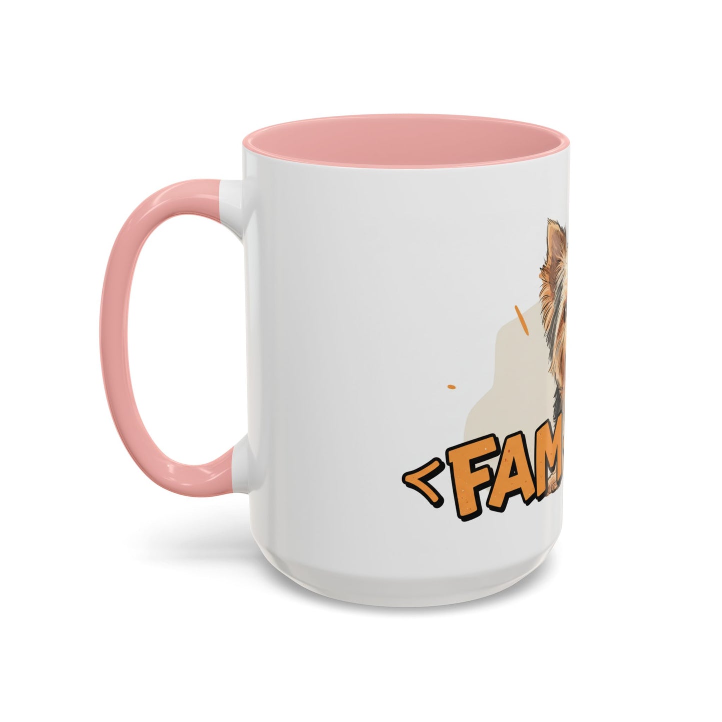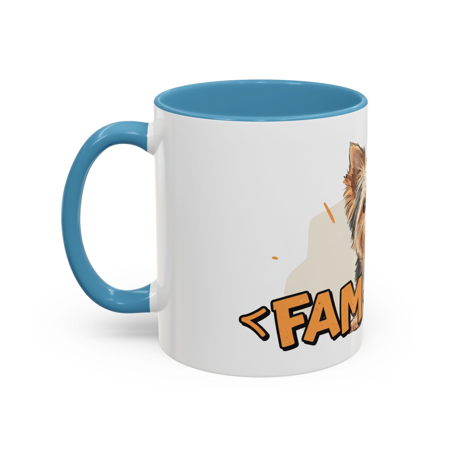 Bring joy to your mornings with this Yorkie dog coffee mug. The design features a cute Yorkie printed on both sides. Each sip feels special for anyone who loves dogs. The accent color inside the mug adds a bold touch. The Yorkie dog coffee mug stands out in any kitchen. Display it on your shelf or desk as a cheerful accent.