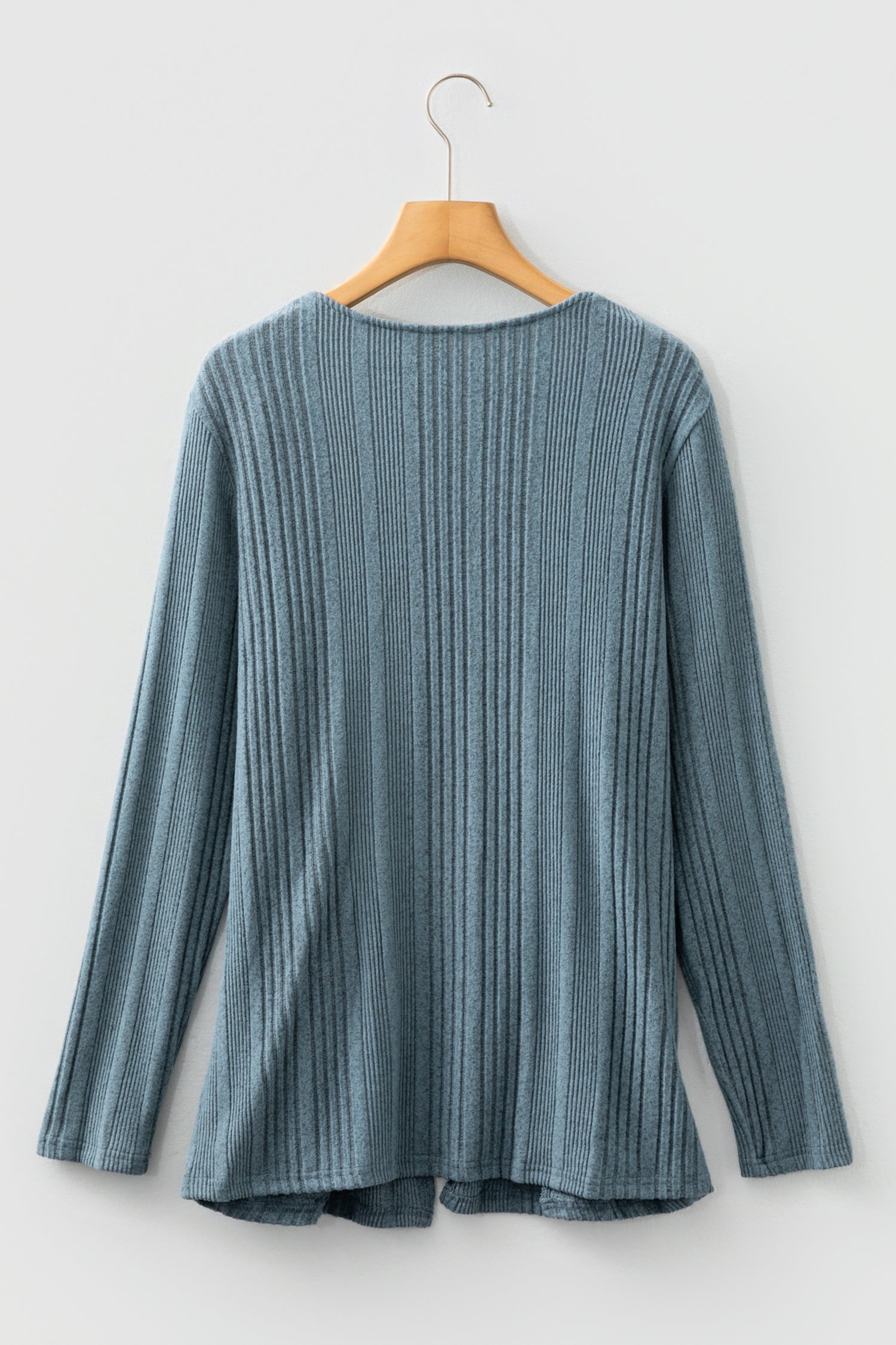 Showcase your style with this black ribbed open front cardigan that complements any outfit.