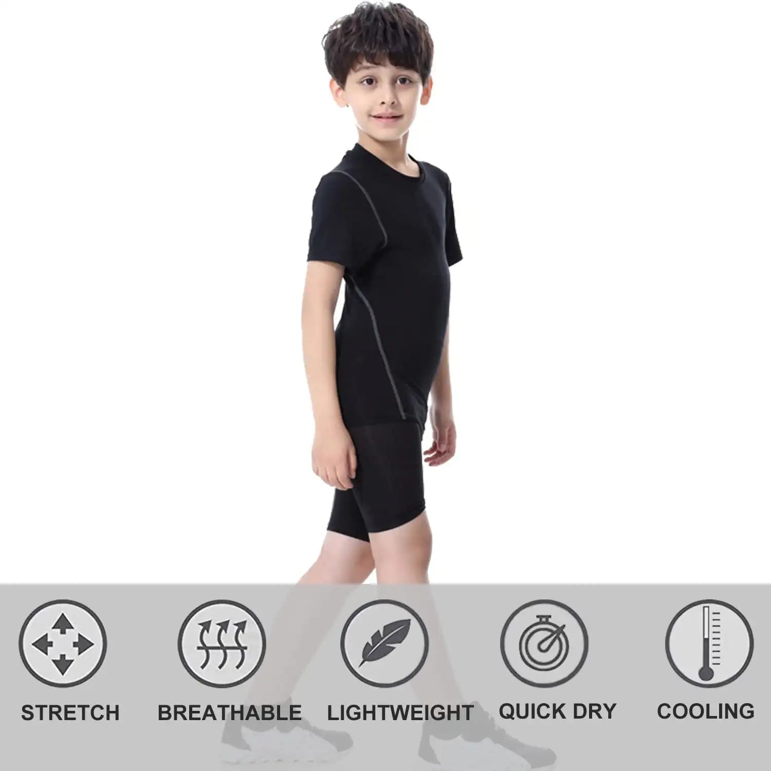 Introducing our premium boys compression shirt, designed for active kids who love sports! This short sleeve football undershirt is an essential base layer for young athletes. Made from quick-dry fabric, it keeps your child comfortable during intense practices or games.