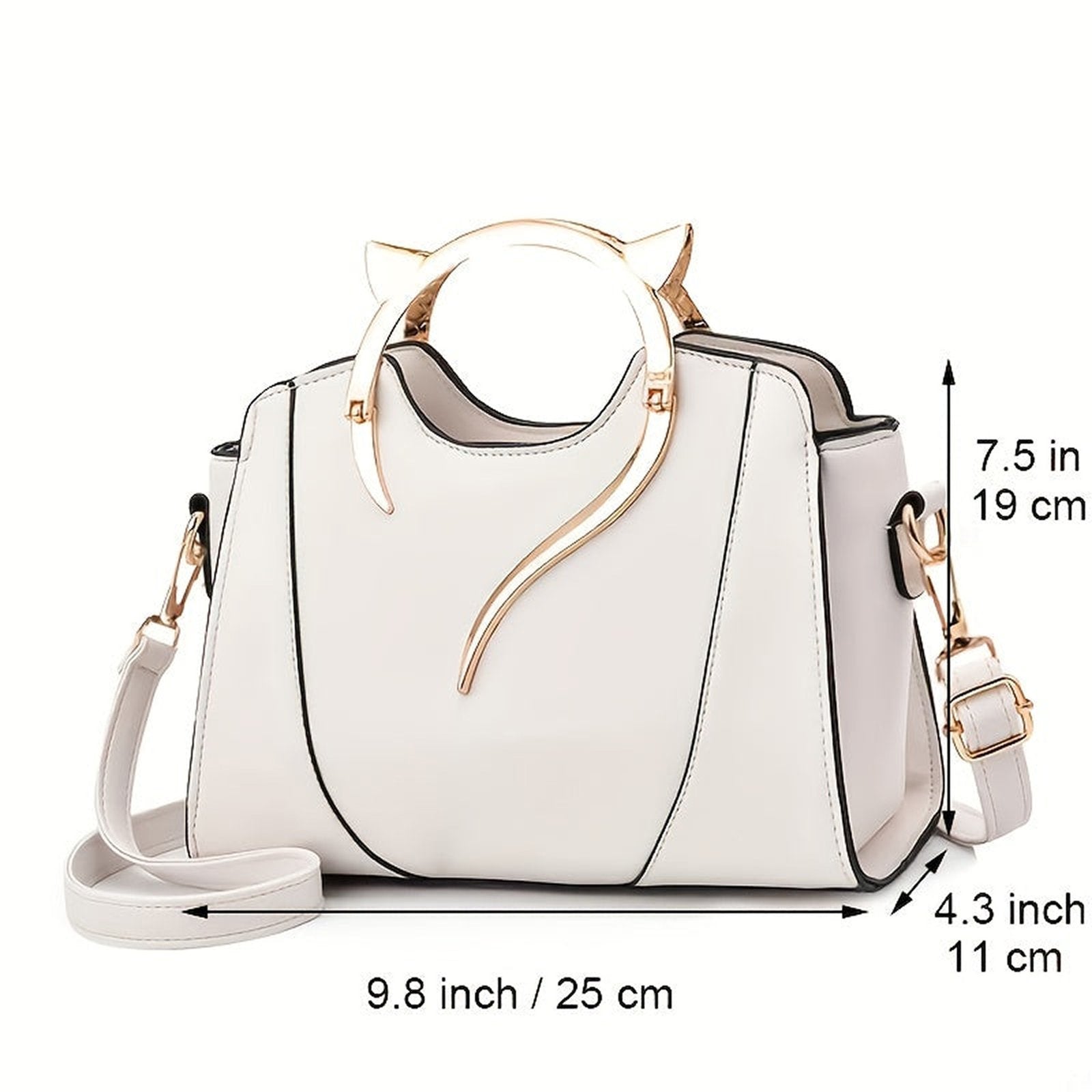 Elevate your accessory game with our Elegant Tote Satchel Bag. This stylish classic shoulder bag redefines versatility with its unique cat ear handle design. Whether you're heading to brunch or a meeting, this bag fits seamlessly into any outfit.