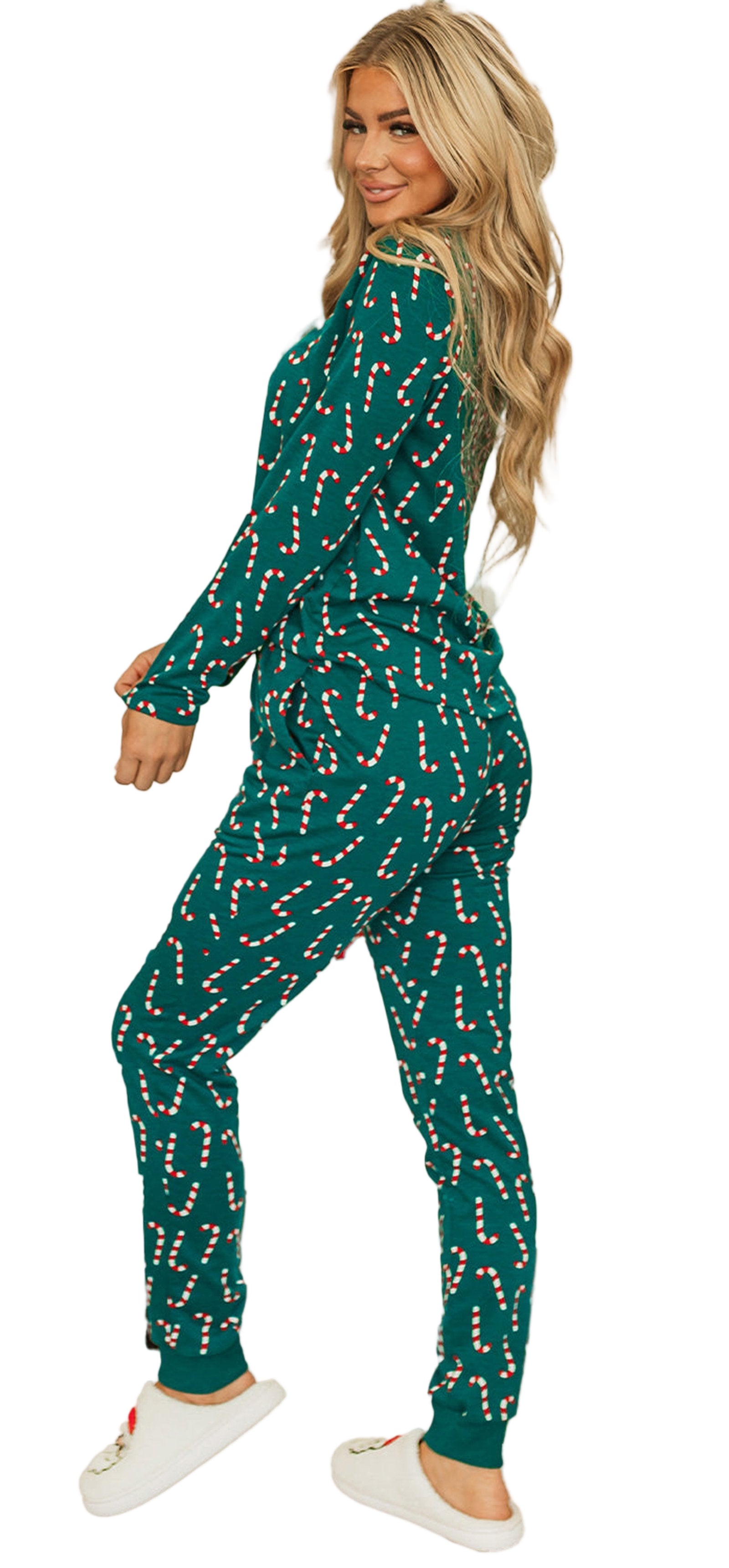 Features a festive candy cane print that adds a cheerful touch to your loungewear collection.