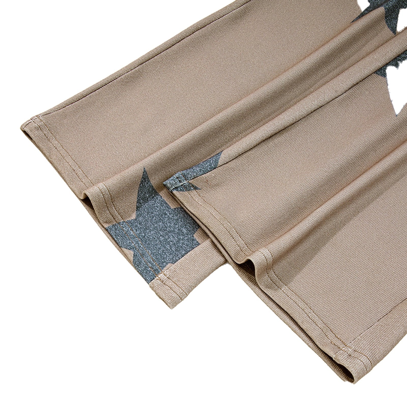 One of the standout features of our khaki star print lounge set is its versatility. Pair it with your favorite slippers for a cozy evening look or dress it up with stylish sneakers for a quick run to the store. The neutral khaki tone allows for easy mixing and matching with other wardrobe staples.