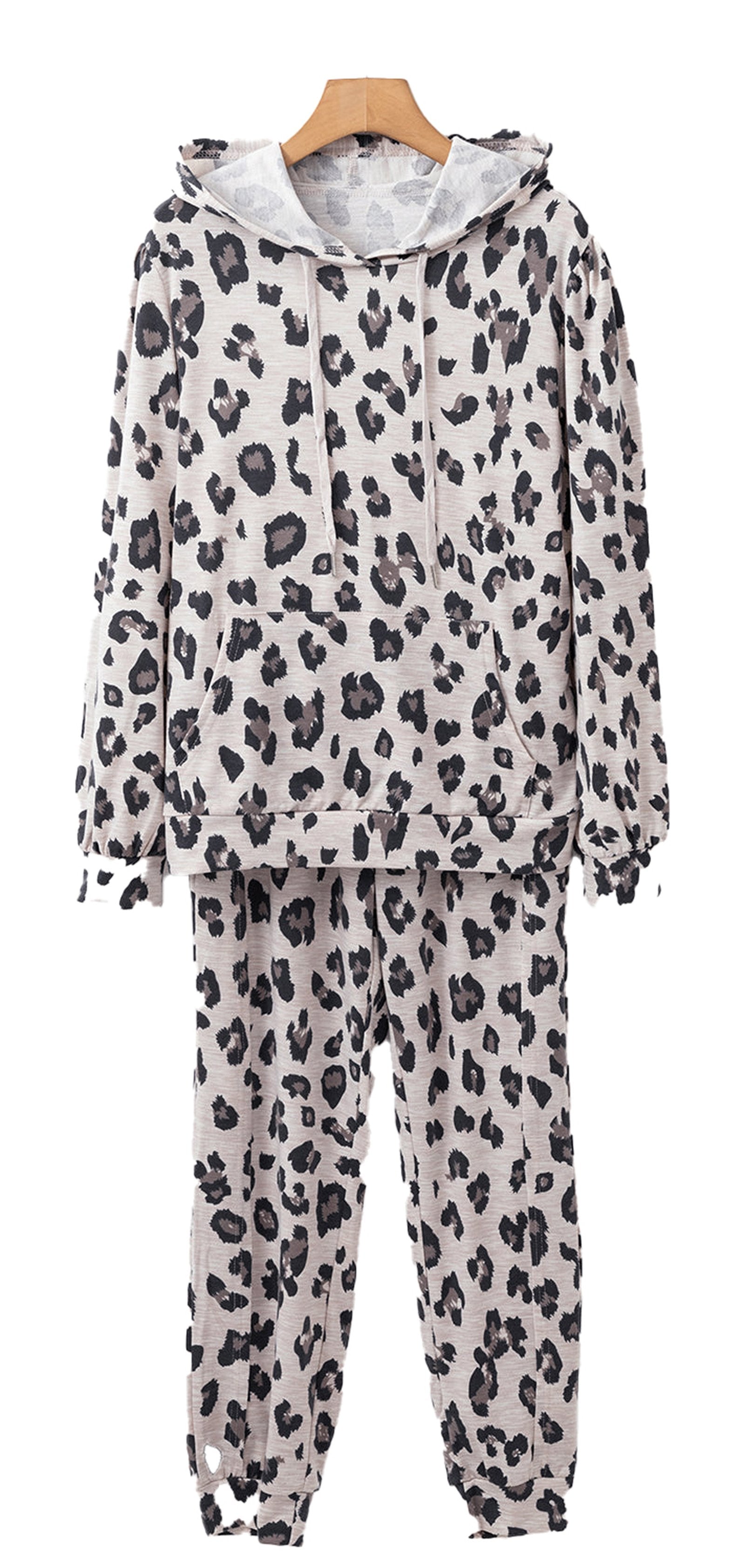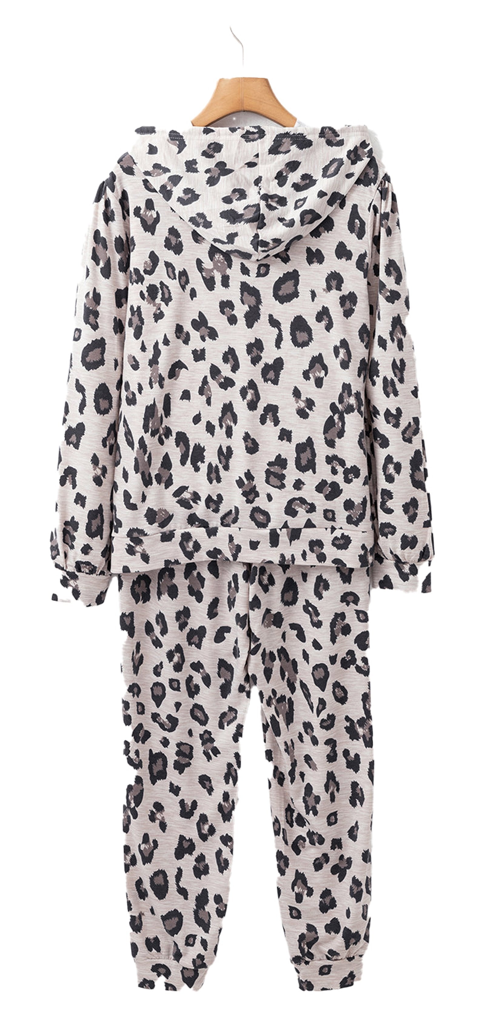 Elevate your loungewear game with the stylish leopard print lounge set. This chic set includes a cozy drawstring hoodie and matching skinny pants, perfect for lounging at home or running quick errands. Made from a soft fabric blend, it offers ultimate comfort, making it ideal for those lazy days or cozy nights.