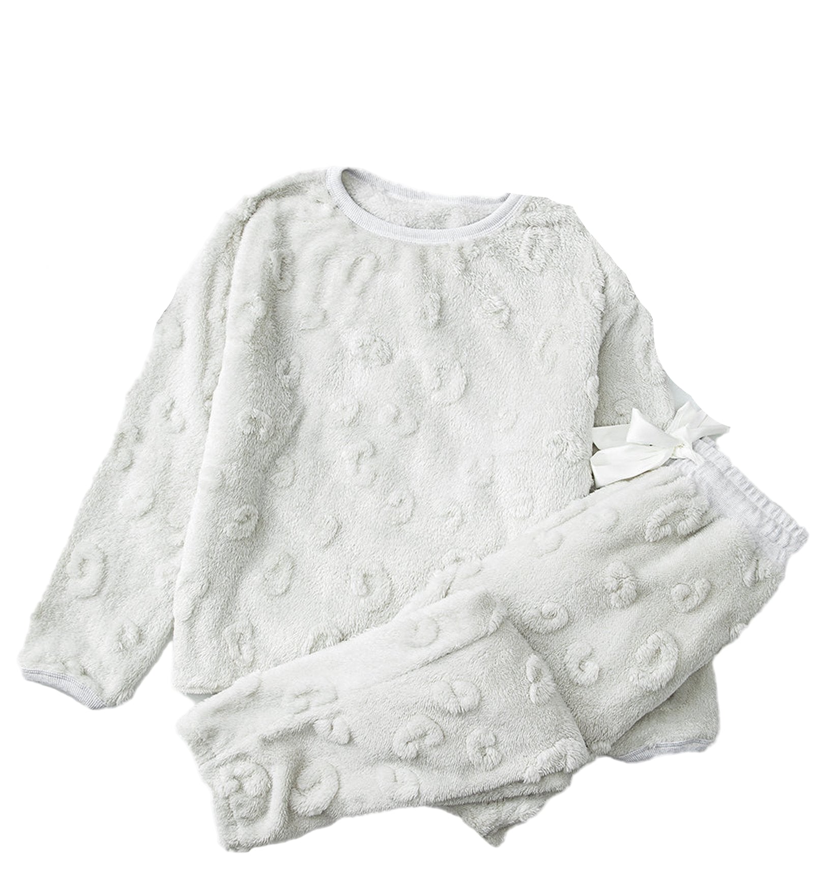 Admire the stylish light grey leopard texture that adds a trendy touch to your loungewear.