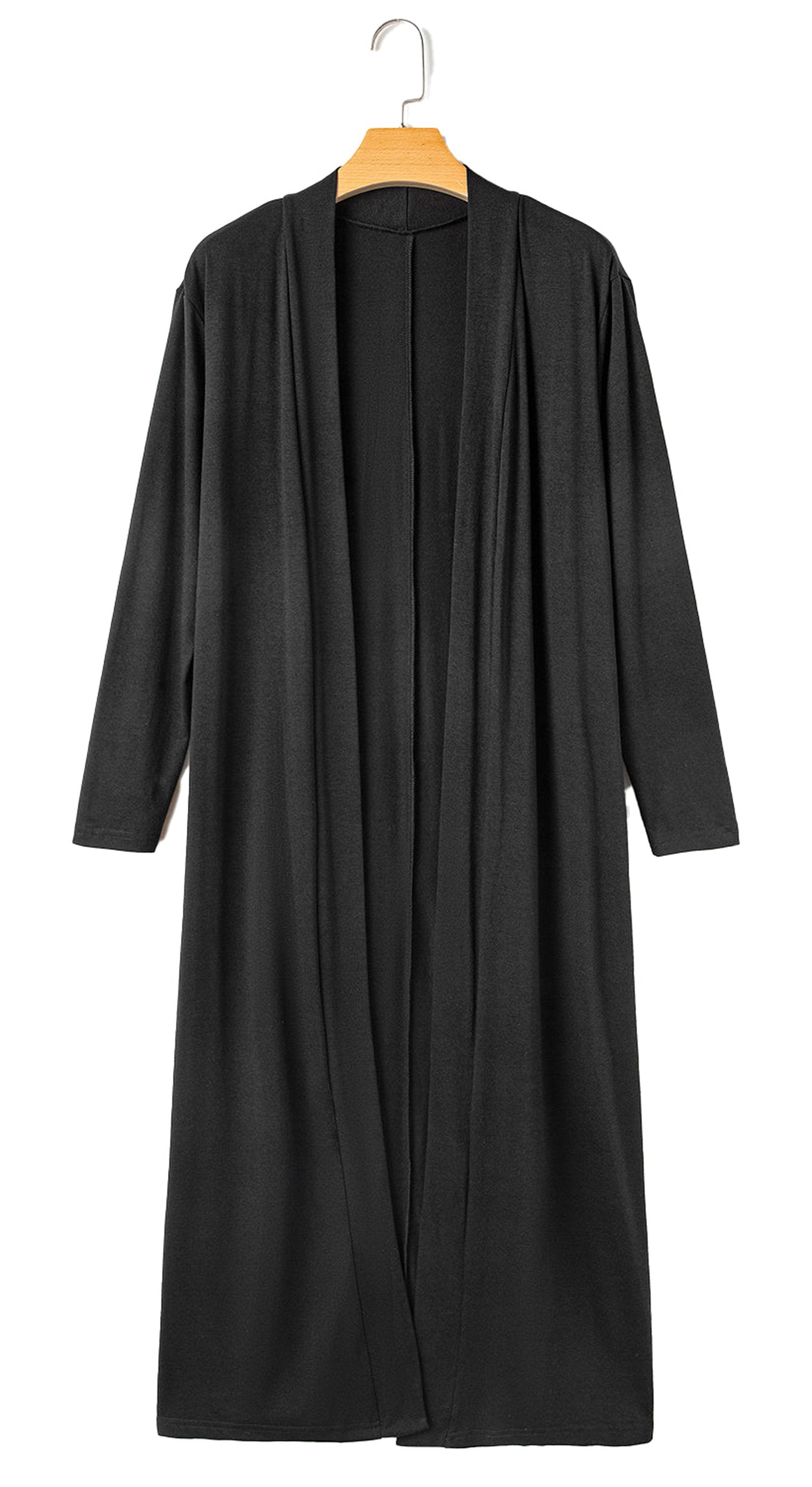 Features a relaxed fit cardigan that drapes elegantly over the body.