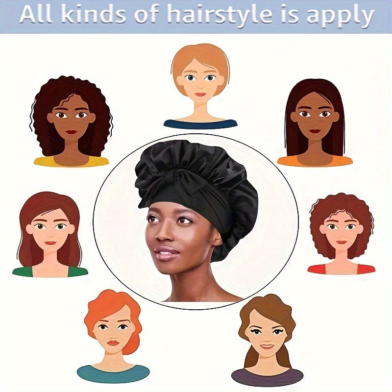 Ideal for any hair type, this satin bonnet with bow for women easily accommodates everything from loose curls to sleek hairstyles. Its elastic design ensures a comfortable fit, allowing for all-night wear without slipping. Whether you're enjoying a cozy night in or indulging in a relaxing bath, this stylish bonnet will be your go-to accessory.