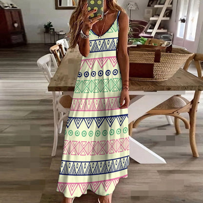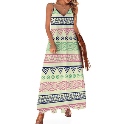 Sling Ankle Long Dress Geometric Design Women'S Summer Dress