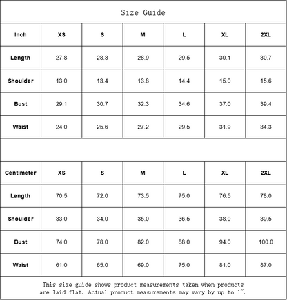This size guide shows product measurements taken when products are laid flat. Actual product measurements may vary by up to 3cm.