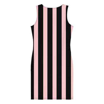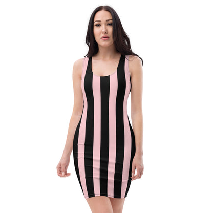 Step into confidence with the Black Pink Striped Bodycon Dress from LuckeLadybug LLC. This striped womens fashion dress offers a bold look made for women who love making a statement. Wide vertical stripes in black and pink create a balanced silhouette that flatters any figure.