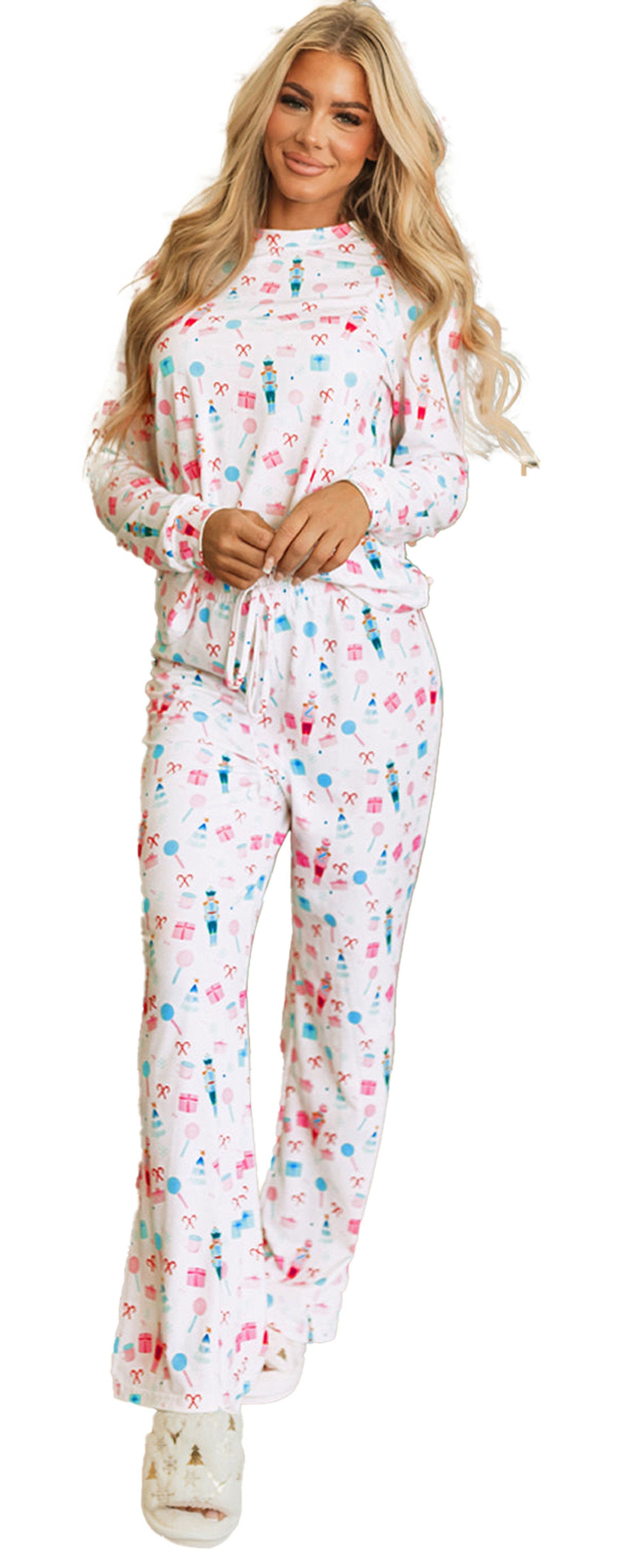 Step into the season of joy with our White Christmas pajama set women. This charming two-piece set includes a cozy long sleeve top and wide-leg pants. Adorned with a delightful Christmas pattern, it brings festive cheer to your holiday nights. The soft fabric ensures comfort, making it perfect for lounging or festive gatherings.