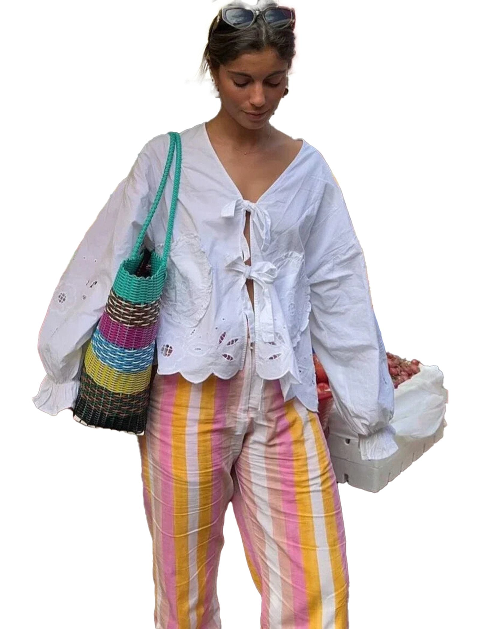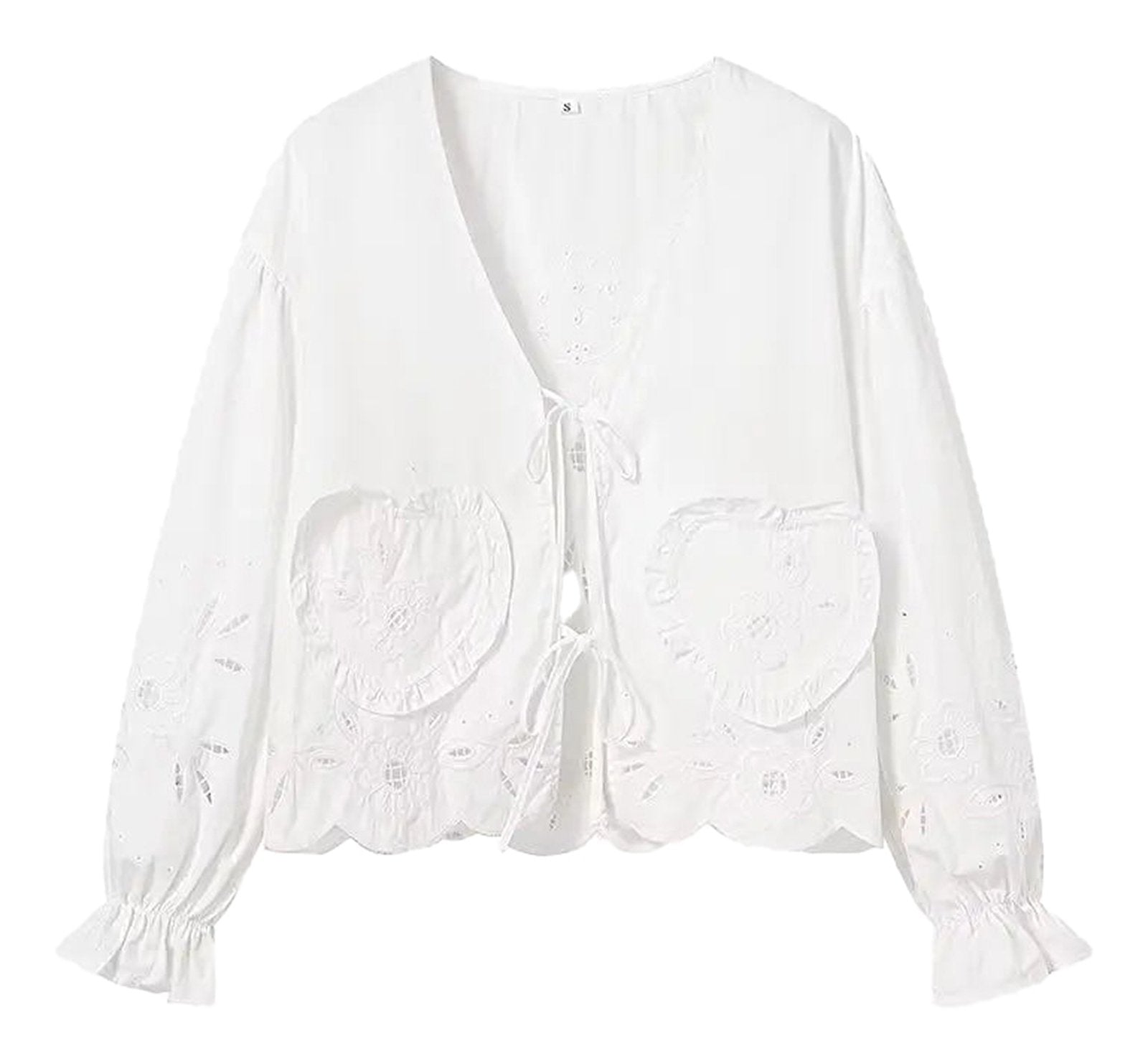 Elevate your everyday look with this White Embroidered Puff Sleeve Blouse. Its charming puff sleeves add a flirty volume, while delicate embroidery brings a touch of whimsy. Light and breezy, it’s perfect for dancing through your day with effortless style and a playful spirit.