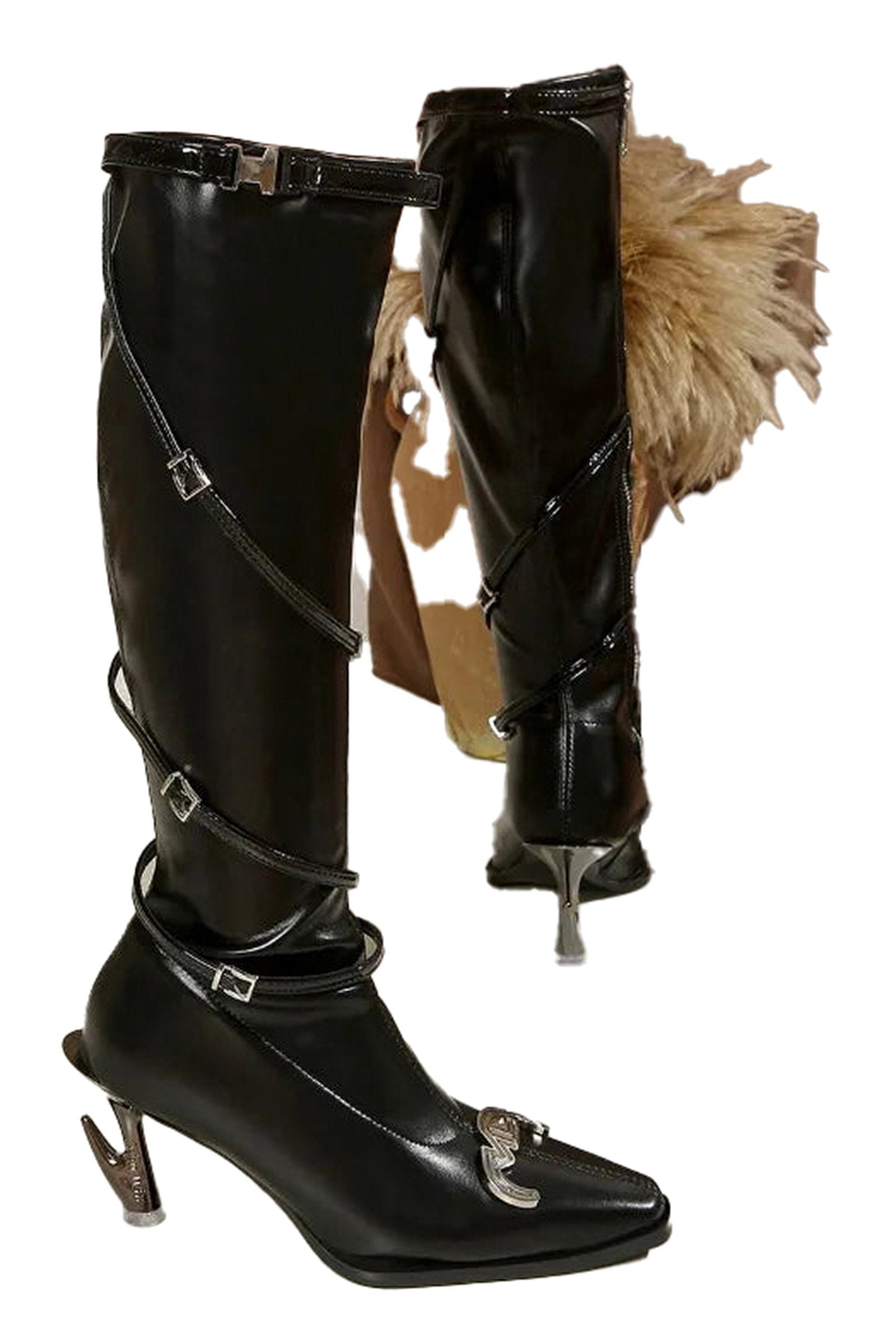 Crafted from high-quality materials, these stiletto heel boots come adorned with a chic rivet belt buckle and intricate detailing that enhance your outfit. Whether you’re pairing them with a dress for a night out or trousers for a more casual look, these boots make a statement. The adjustable buckle ensures a snug fit, giving you both style and comfort.